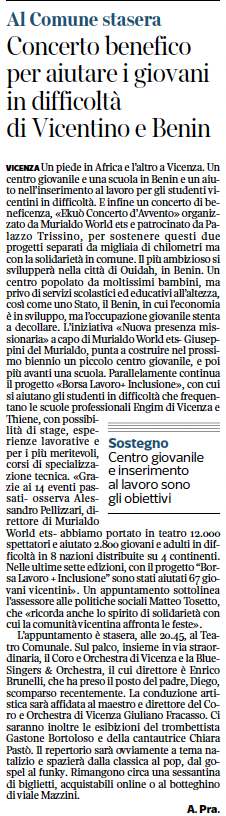 Serata di beneficenza a favore dei progetti “Borsa Lavoro + Inclusione” in Veneto e “Nuova presenza missionaria” in Bénin di Murialdo World ets – Giuseppini del Murialdo.